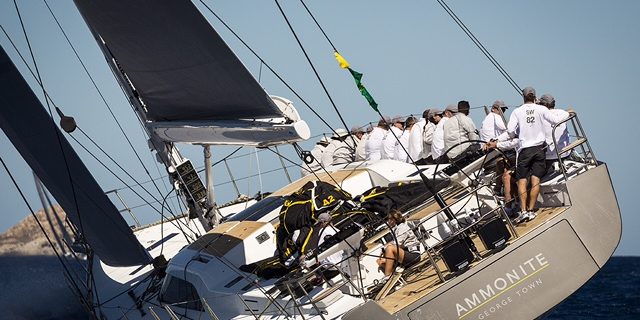 Described as the “goliaths of the yachting”, they were held ashore on day one due to high winds and then battled blustery conditions on day two of the regatta. Ammonite started with a last place in their division, but still have the chance to move up the point score before racing finishes tomorrow.